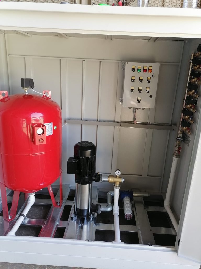 Sistemde mevcut olan tahliye fonksiyonu sayesinde; sistem kapatıldığında tahliye sistemi otomatik olarak devreye girerek panel içindeki hatlara ve su hatlarına, Nozzle’lara basınçlı hava vererek su geçen tüm hatları temizler. Bu sayede tıkanma ve donma kesinlikle engellenmektedir. Yüksek basınçlı sistemlerde su basıncının yüksek olmasından dolayı herhangi bir tıkanma söz konusu olmamaktadır.